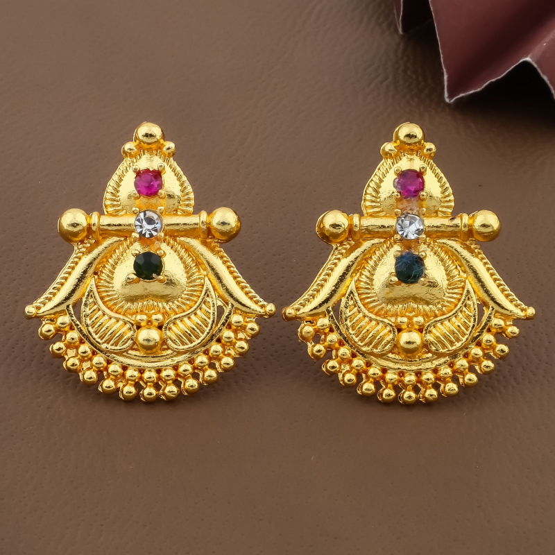 Enhance your ethnic jewellery collection with this elegant combo set of two beautifully designed drop earrings. The first pair features a stylish ethnic design adorned with vibrant pink, white, and green stones that add a festive and colorful touch. The second pair showcases a classic traditional pattern with intricate engraved detailing and delicate hanging bead charms for a graceful ethnic look. Crafted with rich gold polish, these earrings perfectly complement traditional outfits and festive attire.