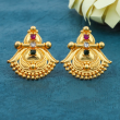 This stylish combo set features five beautifully crafted pairs of stud earrings designed with a rich gold-tone polish and elegant detailing. The set includes two pairs of temple-inspired studs adorned with ruby pink, clear, and green stones along with delicate bead accents. It also features a sparkling crystal cluster star-shaped stud, a classic textured round bead stud, and a modern square stud with intricate gold bead detailing. This versatile combination blends traditional craftsmanship with contemporary style, making it perfect for festive occasions, weddings, parties, and everyday wear.