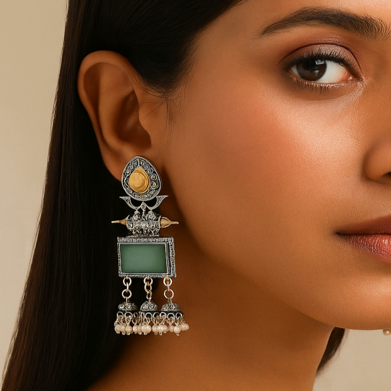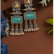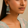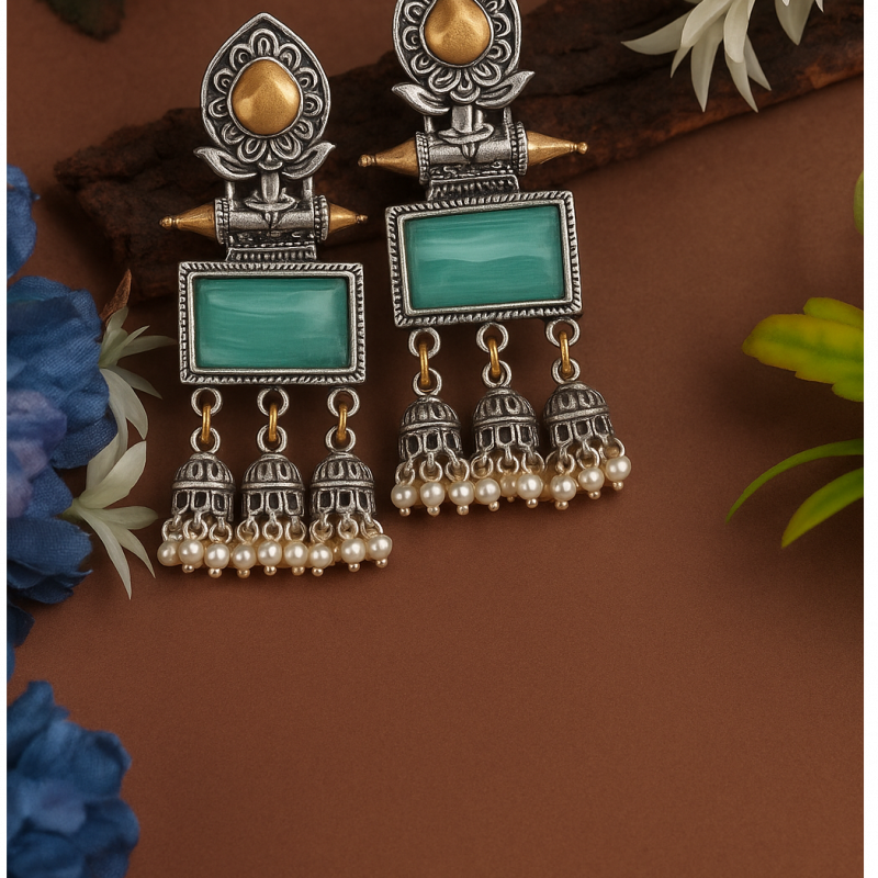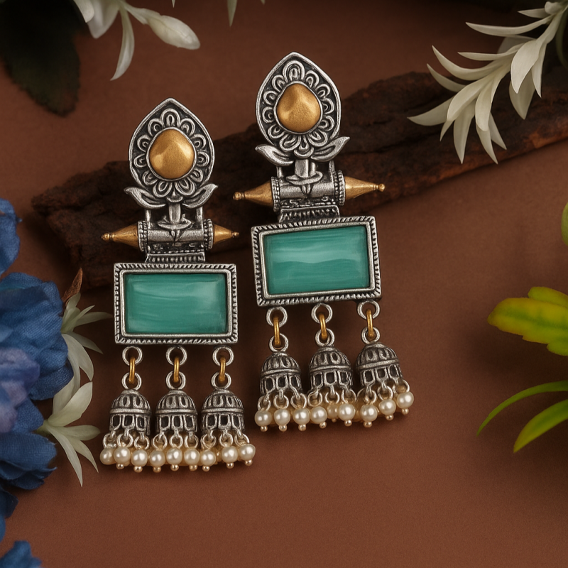 This Earrings made of brass metal with Silver toned , Crafted with a high-quality antique stone and floral motifs.