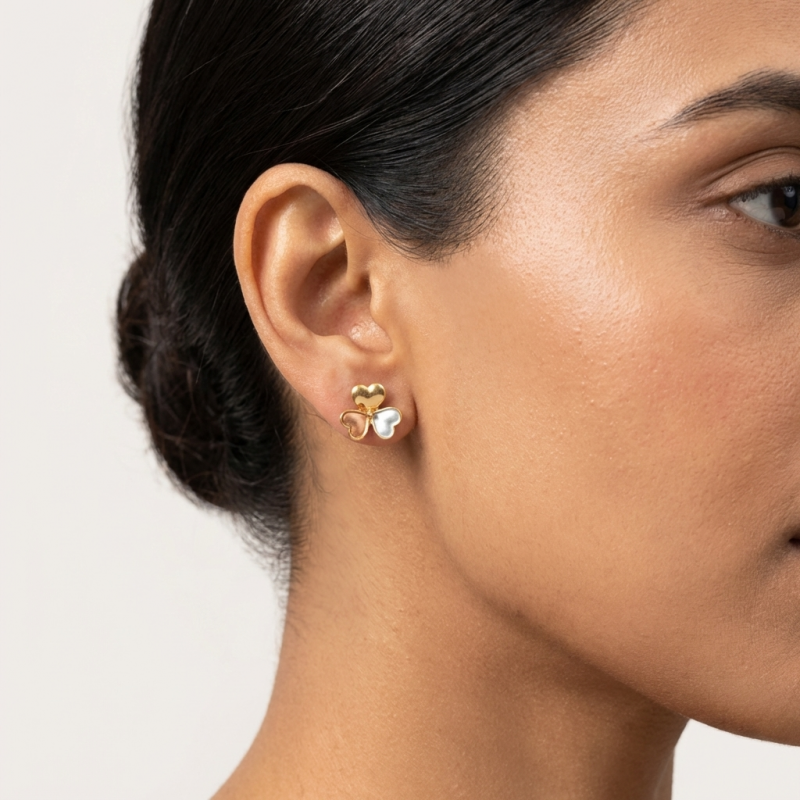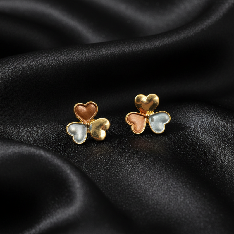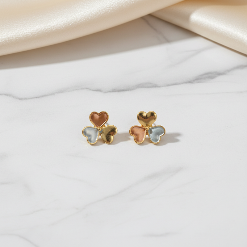 ✦ Three-tone design — Yellow Gold, Rose Gold & Silver hearts ✦ Clover-shaped triple heart stud style ✦ Lightweight & comfortable for all-day wear ✦ Perfect for gifting — birthdays, anniversaries & Valentine's Day ✦ Suitable for everyday wear & special occasions