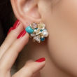 Add a refined sparkle to your look with these elegant cluster stud earrings. Designed with a beautiful mix of turquoise blue stones, luminous pearls, sparkling clear crystals, and delicate gold detailing, these earrings create a perfect balance of modern charm and timeless elegance.