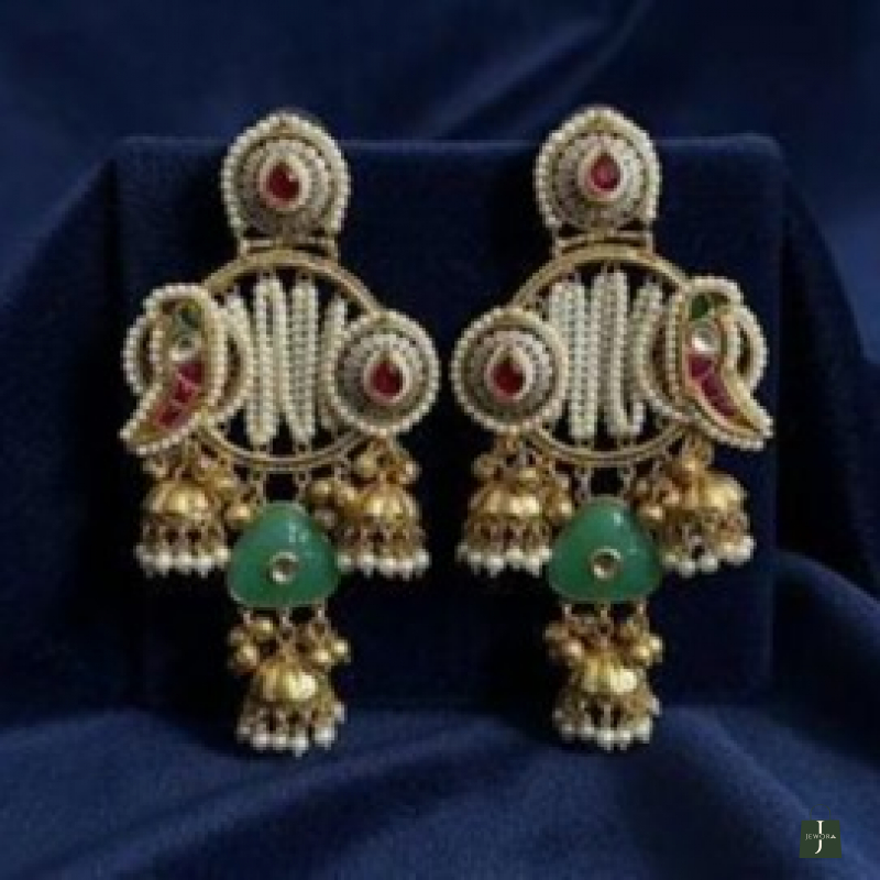 Elevate your ethnic ensemble with these exquisite Artisanal Fusion Earrings. A masterpiece of traditional craftsmanship, these earrings marry the celestial silhouette of the Chandbali with the rhythmic charm of the Jhumka, creating a silhouette that is both majestic and timeless.