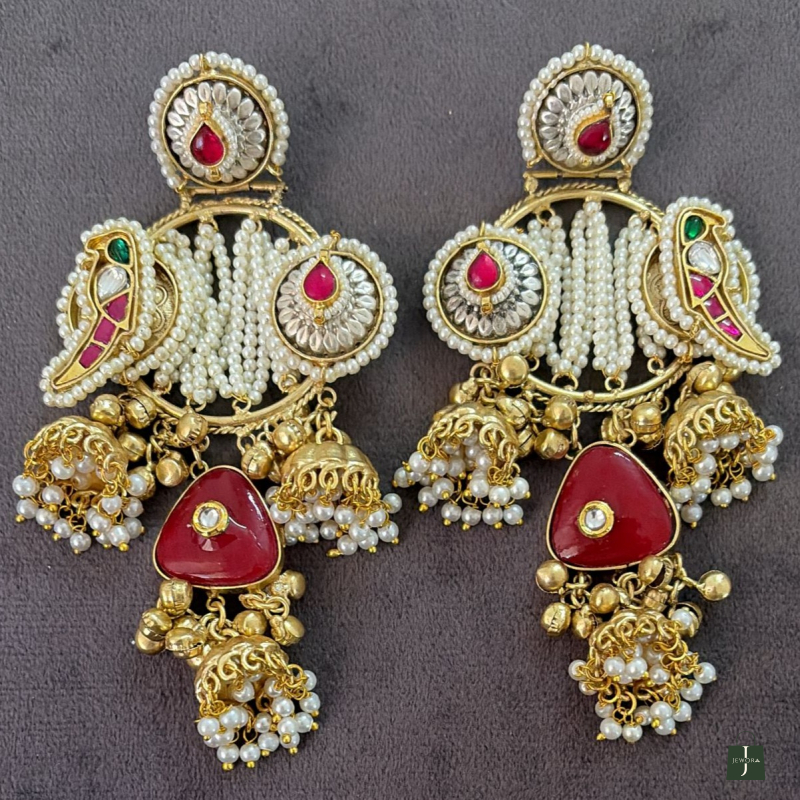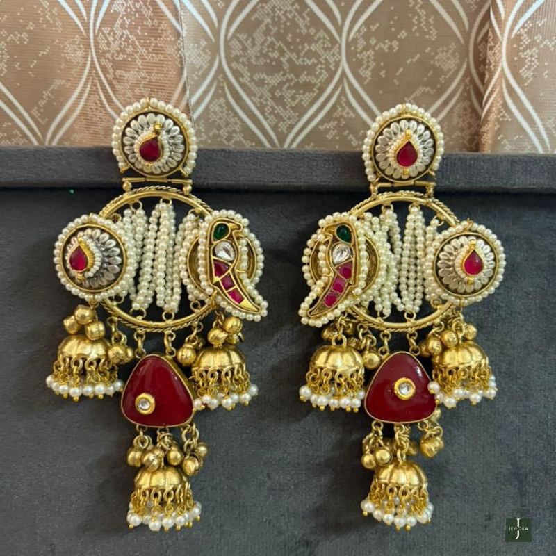 Elevate your ethnic ensemble with these exquisite Artisanal Fusion Earrings. A masterpiece of traditional craftsmanship, these earrings marry the celestial silhouette of the Chandbali with the rhythmic charm of the Jhumka, creating a silhouette that is both majestic and timeless.