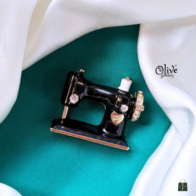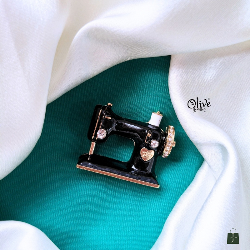 Celebrate creativity and craftsmanship with this elegant Vintage Sewing Machine Brooch Pin. Inspired by classic tailoring tools, this brooch features a glossy black enamel sewing machine design, highlighted with sparkling clear crystals and subtle gold-polished details. A perfect accessory for fashion lovers, designers, and craft enthusiasts.