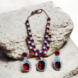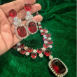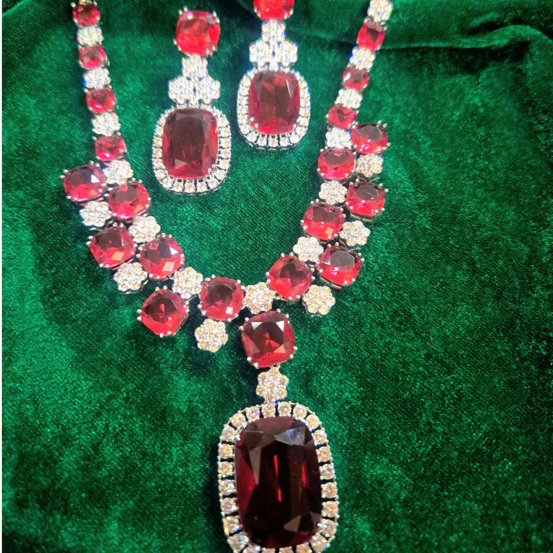 Add a touch of timeless luxury with the White and Ruby Diamond Set, a stunning combination of elegance and rich color. Featuring sparkling white diamond-like stones paired with deep ruby red accents, this set creates a perfect balance of brilliance and boldness. The intricate design enhances the beauty of each stone, giving it a regal and sophisticated appeal. Ideal for weddings, festive occasions, and special celebrations, it complements both traditional and modern outfits effortlessly. With its radiant shine and graceful craftsmanship, this jewelry set brings a royal charm, making you stand out with confidence and elegance.