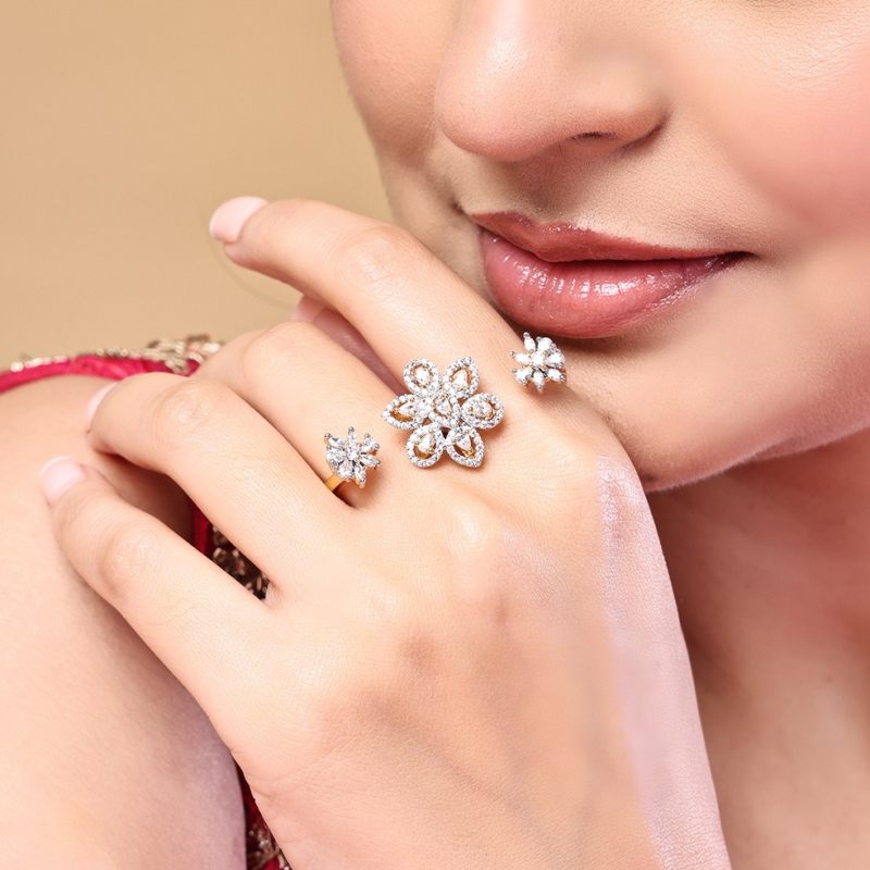 Add timeless elegance to your jewelry collection with this stunning white diamond-studded ring band. Designed with finely set sparkling stones, this ring offers a luxurious shine that enhances any look. The sleek and minimal band structure makes it perfect for both everyday wear and special occasions. Its brilliant white stones reflect light beautifully, creating a graceful and sophisticated appeal. Lightweight and comfortable, this ring band pairs effortlessly with both western and ethnic outfits, making it a versatile must-have accessory.