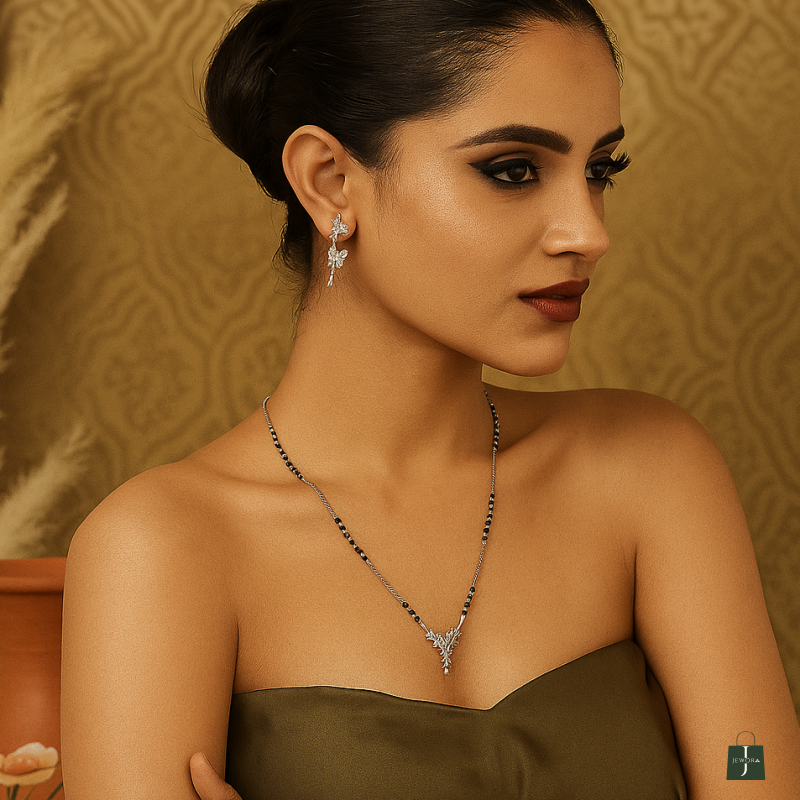 This graceful and timeless silver Mangalsutra is designed to enhance every woman’s natural charm. Crafted from premium sterling silver.Perfect for sensitive skin.it’s a must-have in every jewelry collection.