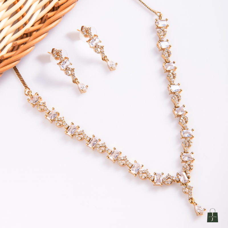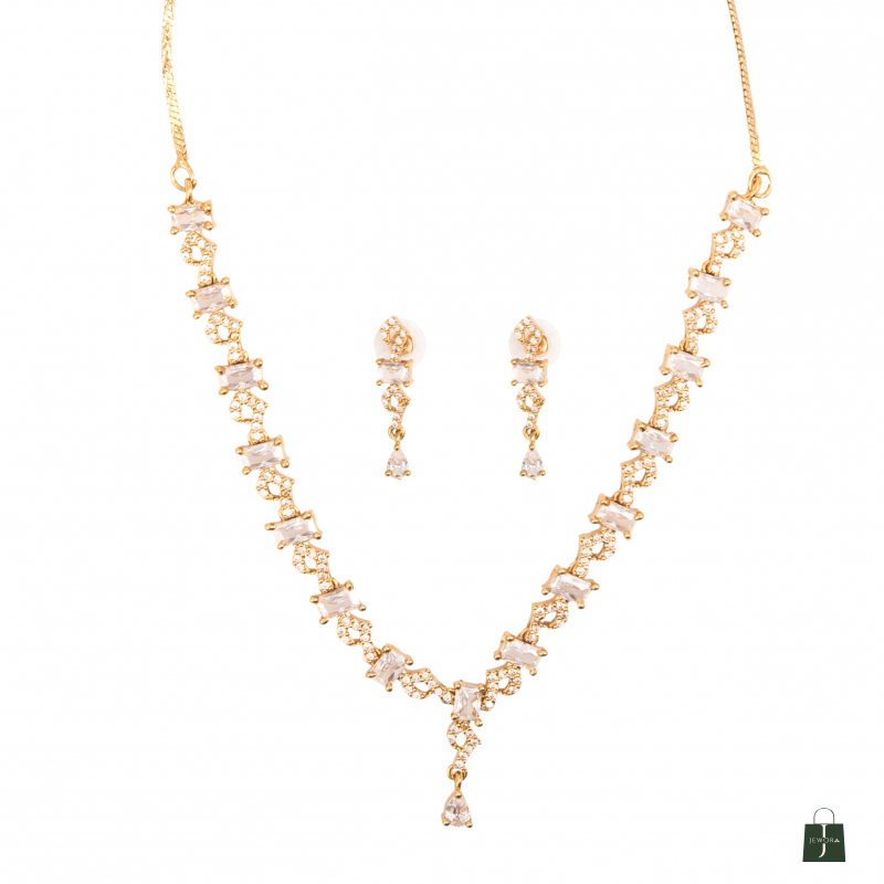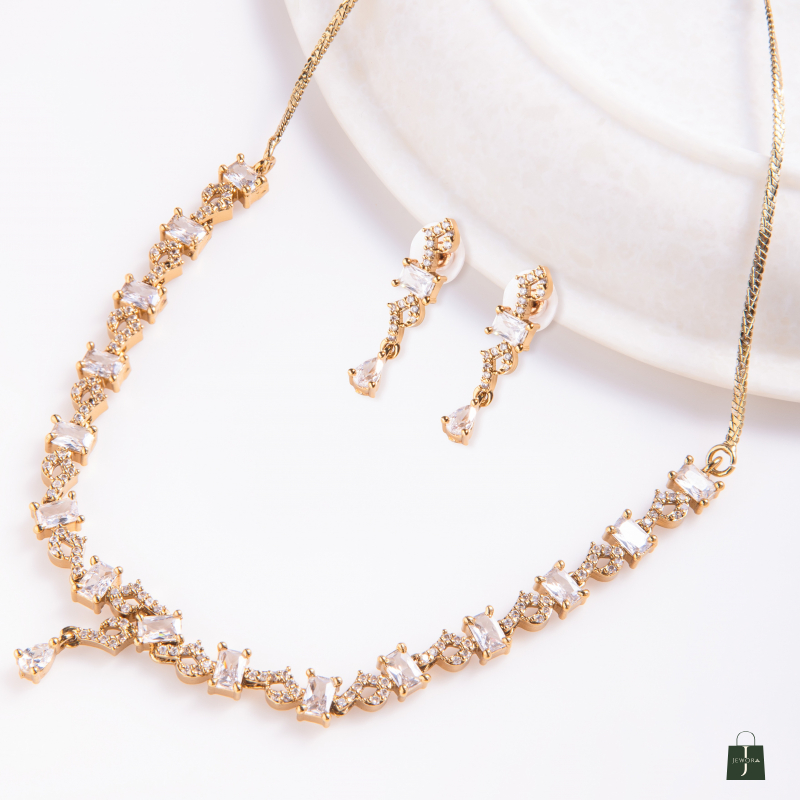 Embrace timeless elegance with the Zarash Mehendi Polish Set, a perfect blend of traditional craftsmanship and contemporary style. Crafted on a sterling silver base and finished in a rich mehendi polish (dull gold tone), this set is adorned with fine-quality cubic zirconia stones that sparkle with every movement. Ideal for weddings, festive occasions, and ethnic celebrations, it adds a regal touch to any ensemble.