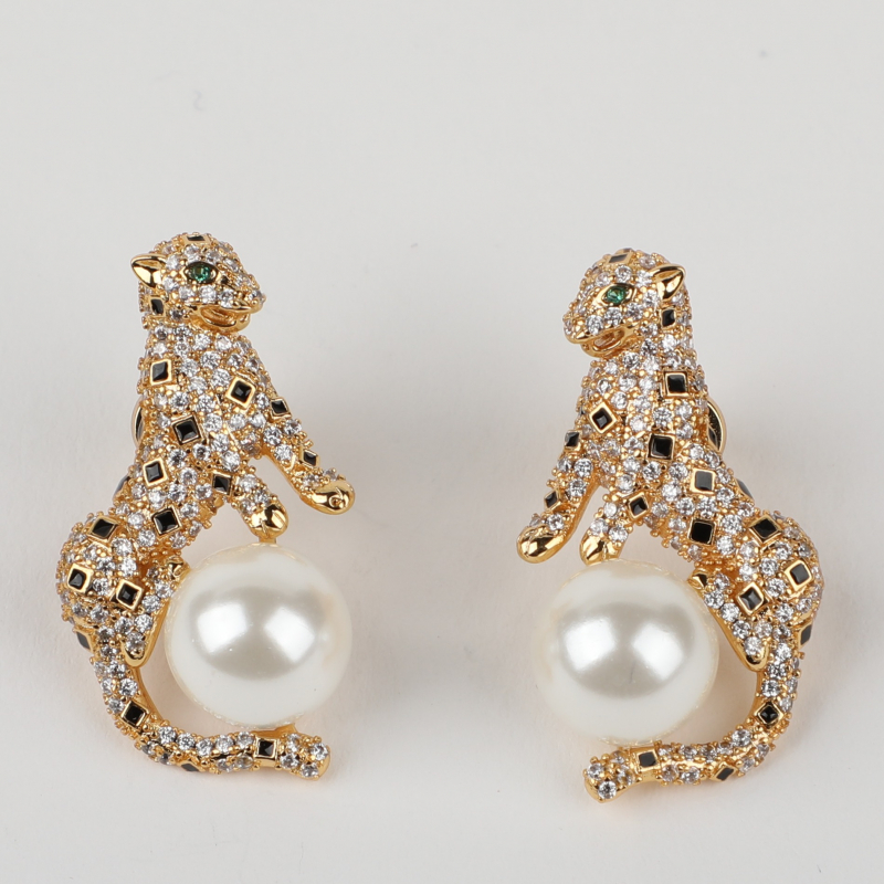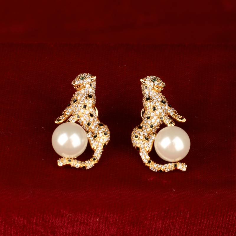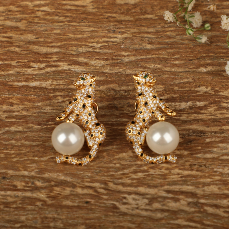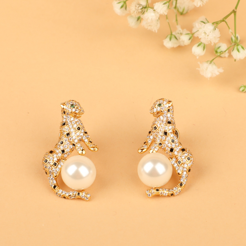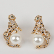 Make a bold yet elegant statement with these exquisite animal-inspired stud earrings. Designed in a rich gold-tone finish, the sculpted motif is intricately encrusted with fine crystal detailing, wrapping gracefully around a luminous pearl centerpiece. The contrast between the sparkling texture and the smooth pearl creates a striking balance of glamour and sophistication.